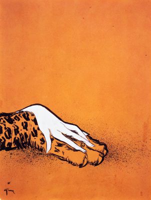 Uplifted by her mad race across a deserted beach, she bursts out laughing. With sea-splashed skin, she looks irresistible in a red dress, like a fiery maiden.
